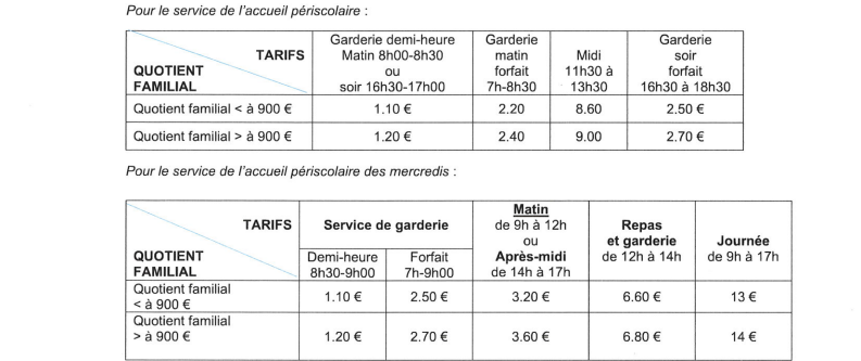 TARIFS